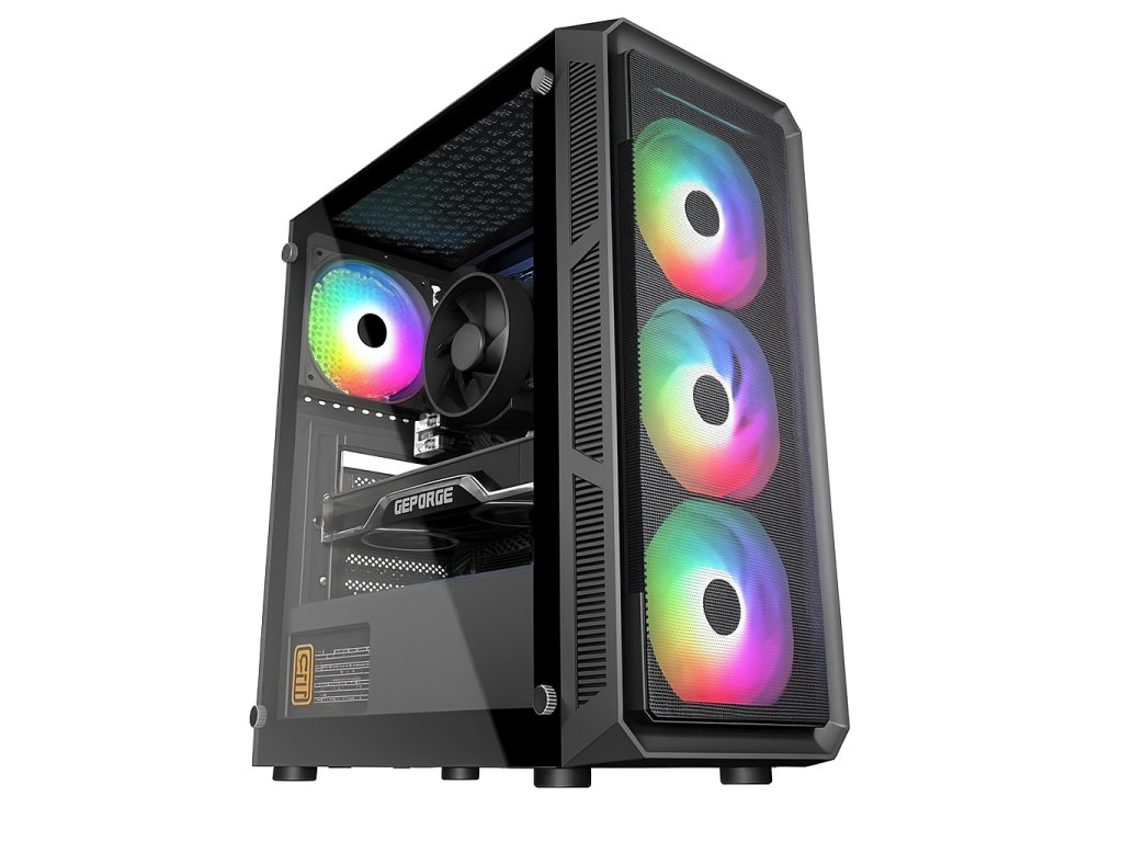 Skříň: VeinX HERMES Midi Tower 4x120 mm ARBG/1x USB 3.0/mesh panel/tvrz.sklo/black